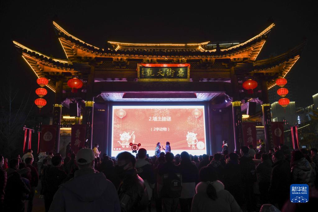 2月15日,市民在合肥罍街夜市參與猜謎活動(dòng)。
