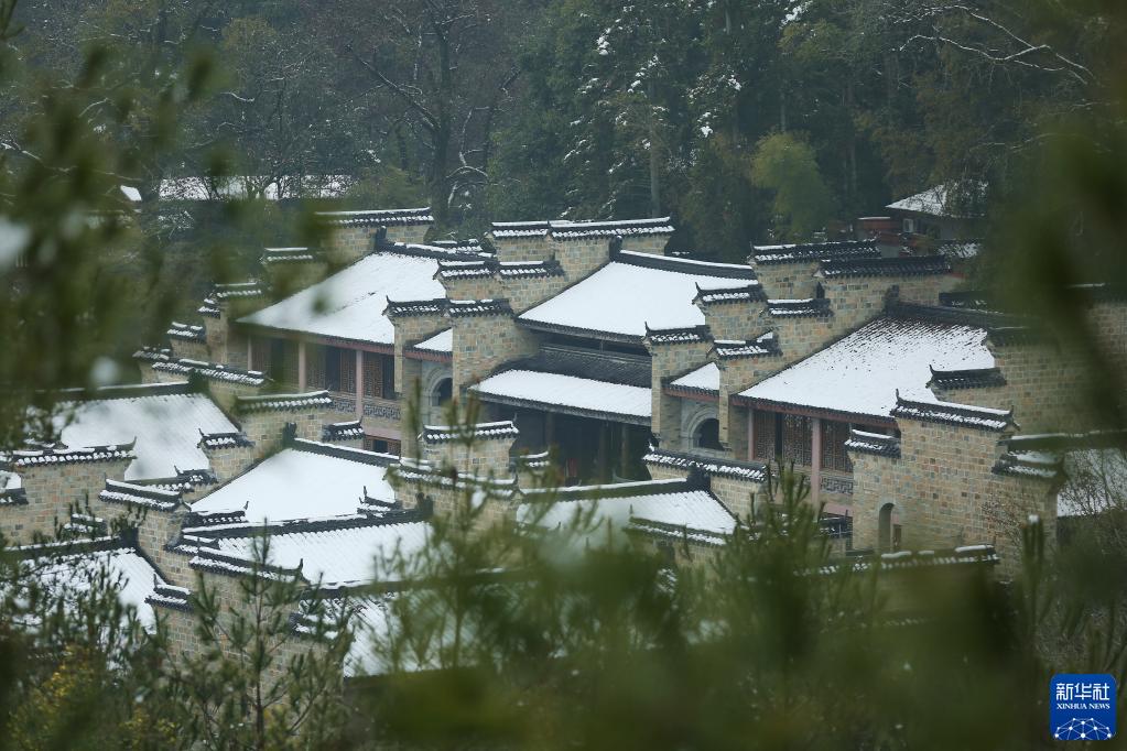 2月21日在福建武夷山國家公園內拍攝的天心古剎雪景。