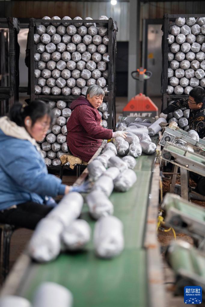 這是2月23日拍攝的萬(wàn)榮縣香菇產(chǎn)業(yè)園內的菌棒生產(chǎn)線(xiàn)。