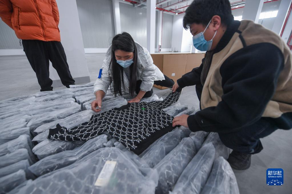 2月23日,湖州市織里鎮一家童裝企業(yè)的工作人員在檢查一批要打包裝箱出口的童裝。