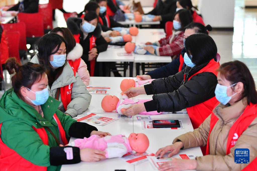 2月24日,在湘潭市雨湖區人力資源和社會(huì )保障服務(wù)中心,學(xué)員在育嬰員培訓班上學(xué)習育嬰知識。