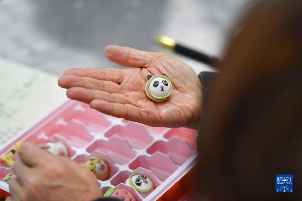 2月24日,在湘潭市雨湖區人力資源和社會(huì )保障服務(wù)中心,學(xué)員在面點(diǎn)師培訓班上學(xué)習制作“冰墩墩”造型的湯圓。
