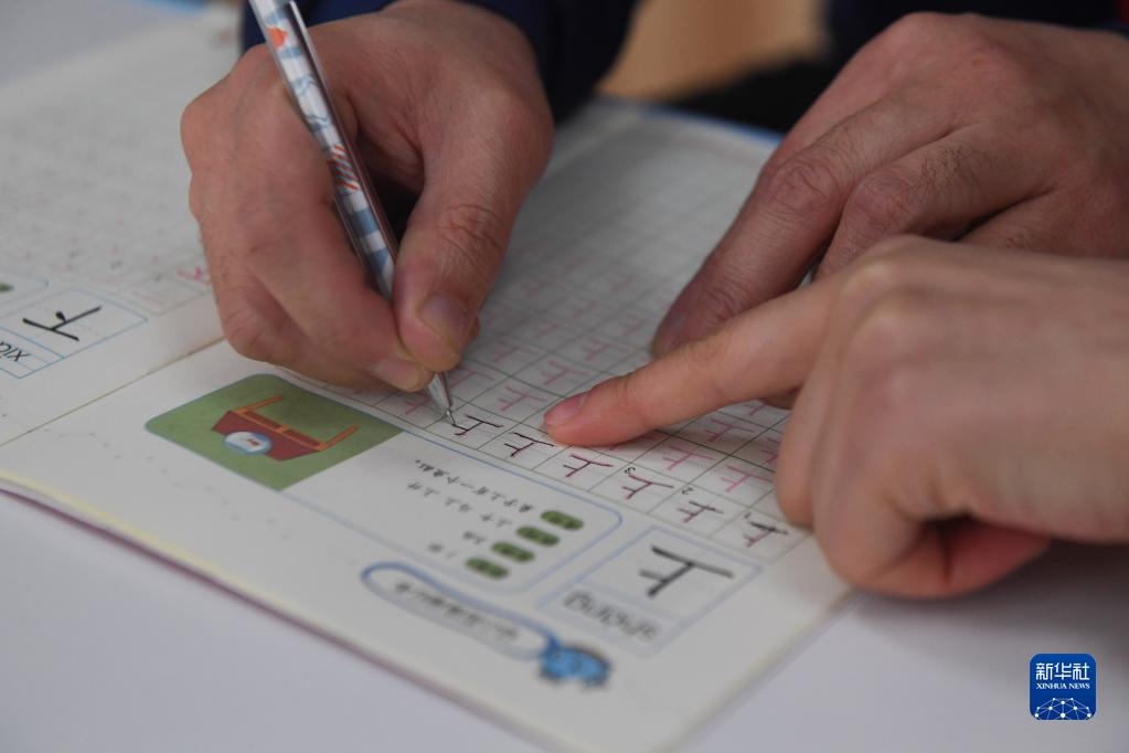 2月23日,在湖州市織里鎮晟舍村殘疾人之家,來(lái)自周邊的殘疾人(包括精神殘疾、智力殘疾和肢體殘疾)在志愿者輔導下練習寫(xiě)字。