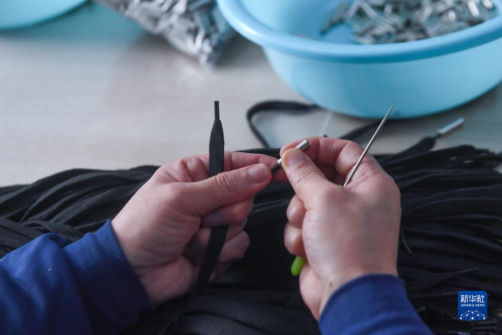 2月23日,在湖州市織里鎮晟舍村殘疾人之家,來(lái)自周邊的殘疾人(包括精神殘疾、智力殘疾和肢體殘疾)制作童裝輔料。完成訂單后,他們可以獲得相應報酬和補貼。