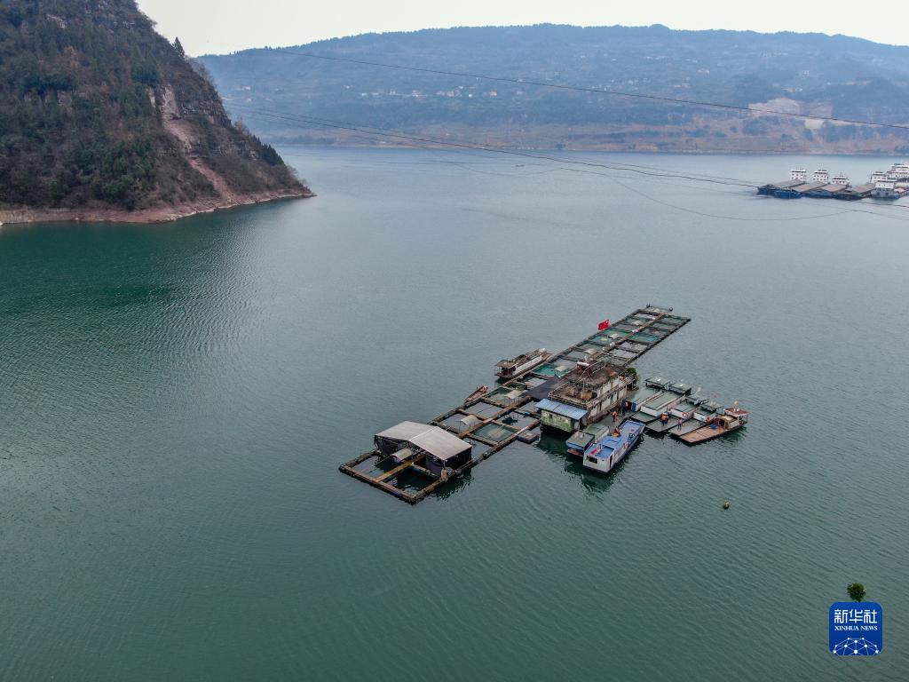 這是2月25日拍攝的三峽庫區珍稀魚(yú)類(lèi)馴養基地(無(wú)人機照片)。