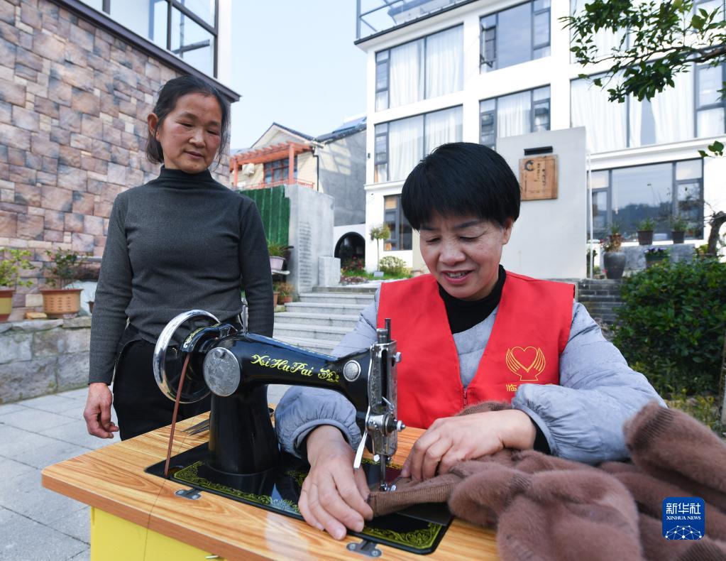 3月1日,昌化鎮“有禮昌化”流動(dòng)志愿服務(wù)站的志愿者在給白牛村村民提供縫補服務(wù)。