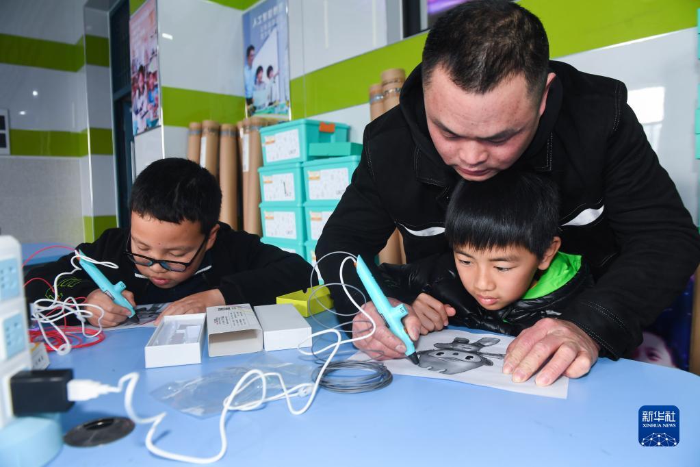 3月1日,杭州市臨安區科學(xué)技術(shù)協(xié)會(huì )工作人員在城北小學(xué)指導學(xué)生使用3D打印筆繪制立體圖案。