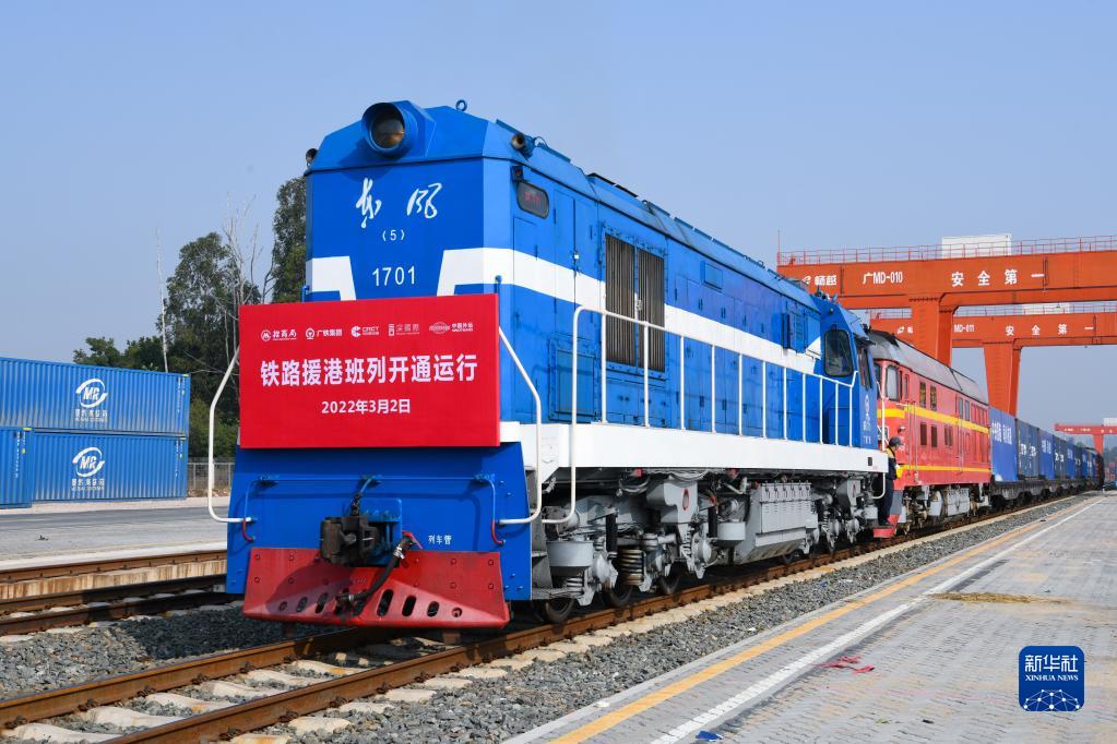 3月2日,首趟“中央援港 同心抗疫”鐵路援港班列駛出深圳平湖南國家物流樞紐。