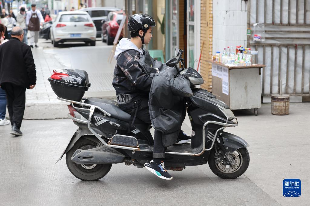 3月1日,“折耳根”樂(lè )隊貝斯手彭萬(wàn)海在路上送外賣(mài)。