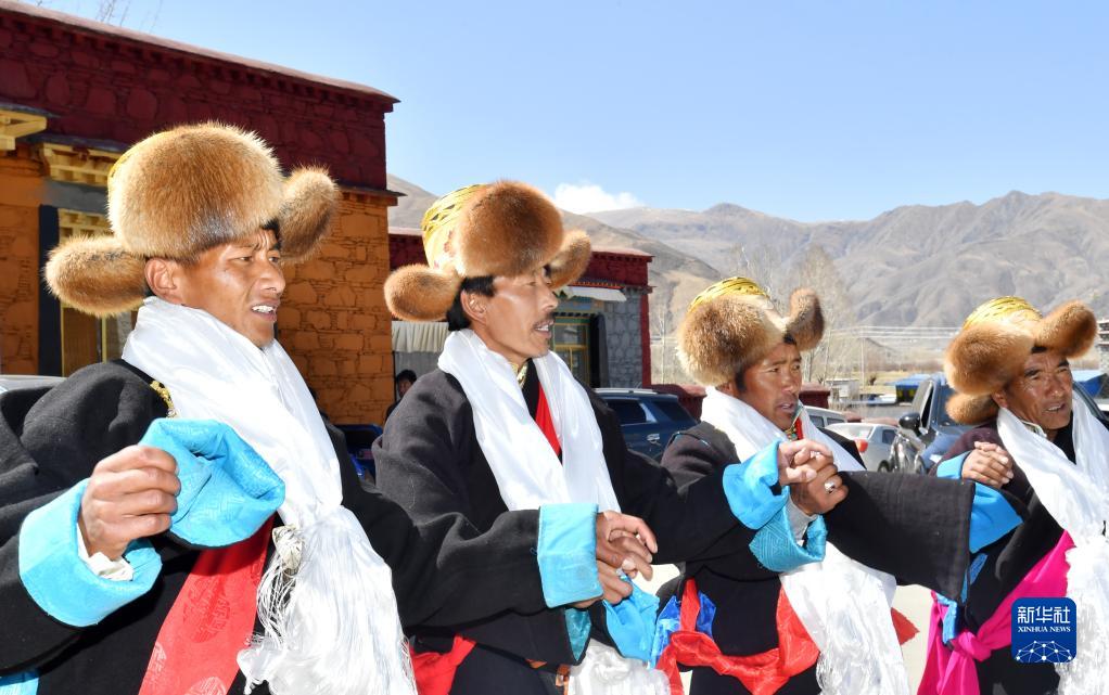 3月3日,西藏山南市貢嘎縣崗堆鎮農民唱歌跳舞,歡度藏歷水虎新年。