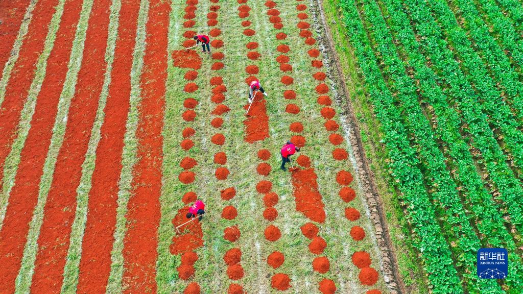 3月3日,在湖南省衡陽(yáng)市常寧市西嶺鎮桐江村,志愿者幫助村民整理旱床育苗苗床(無(wú)人機照片)。