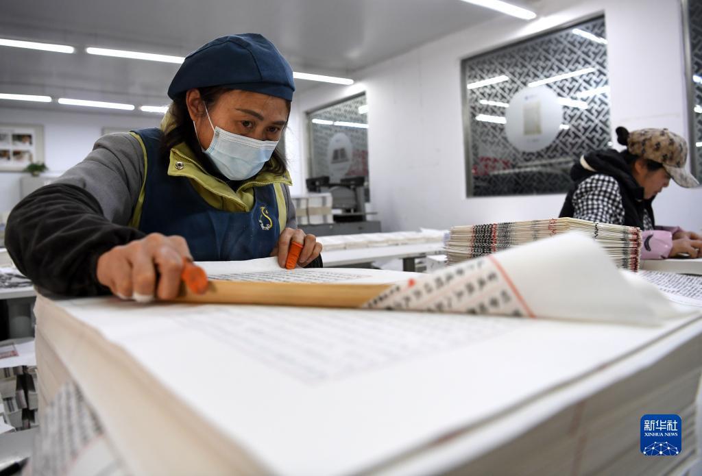 3月3日,工人在涇縣丁家橋鎮一家宣紙企業(yè)內制作宣紙線(xiàn)裝書(shū)。