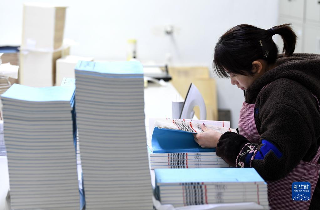 3月3日,工人在涇縣丁家橋鎮一家宣紙企業(yè)內制作宣紙線(xiàn)裝書(shū)。