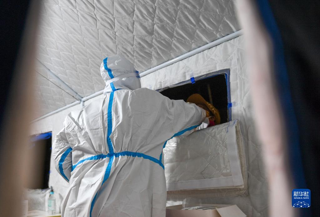 3月4日清晨,在呼和浩特市新城區星火巷社區臨時(shí)核酸檢測點(diǎn),一名醫務(wù)人員在做核酸采樣。