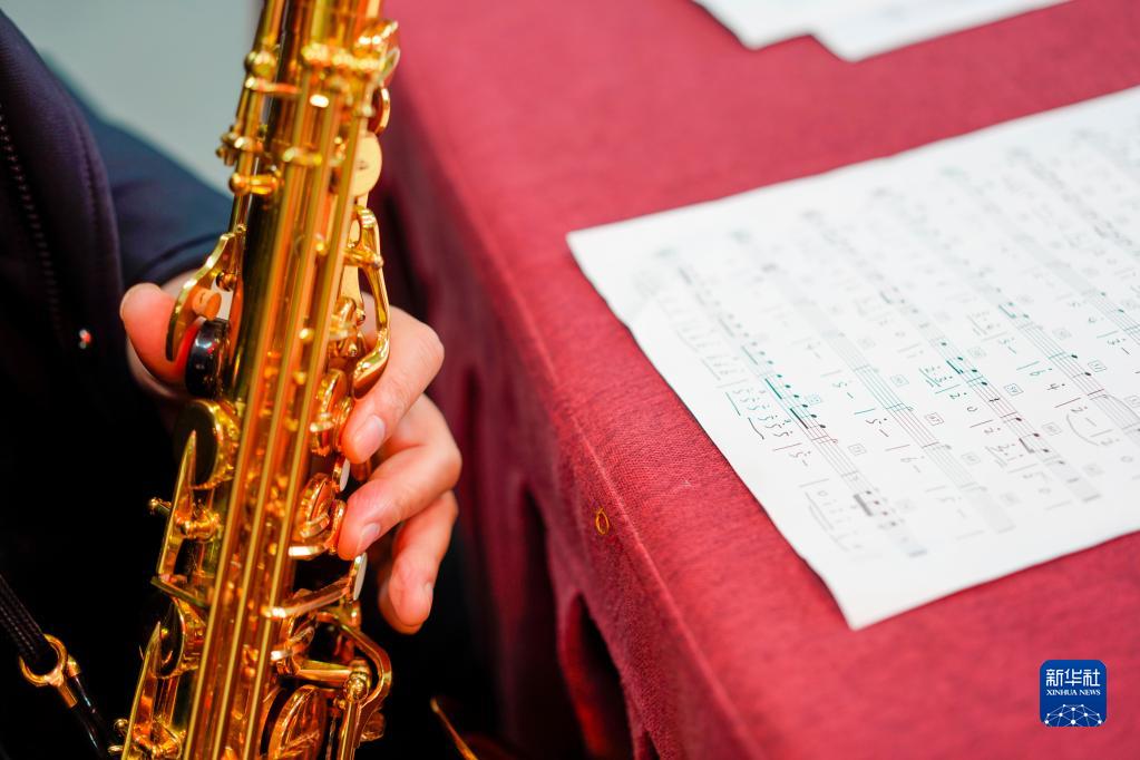 圖為在重慶市特殊教育中心的一間辦公室內,揚帆管樂(lè )團老師周建勛對照國際殘奧委會(huì )會(huì )歌《未來(lái)贊美詩(shī)》用薩克斯進(jìn)行練習(1月12日)。