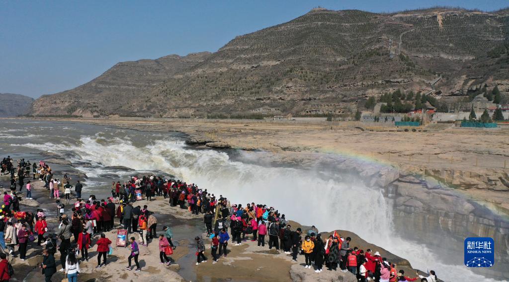 隨著(zhù)氣溫不斷回升,黃河壺口瀑布水流量明顯增大,在陽(yáng)光的照射下,飛瀑與彩虹相映成趣,把一幅動(dòng)靜結合的春天畫(huà)卷展現在游客眼前。