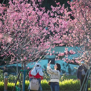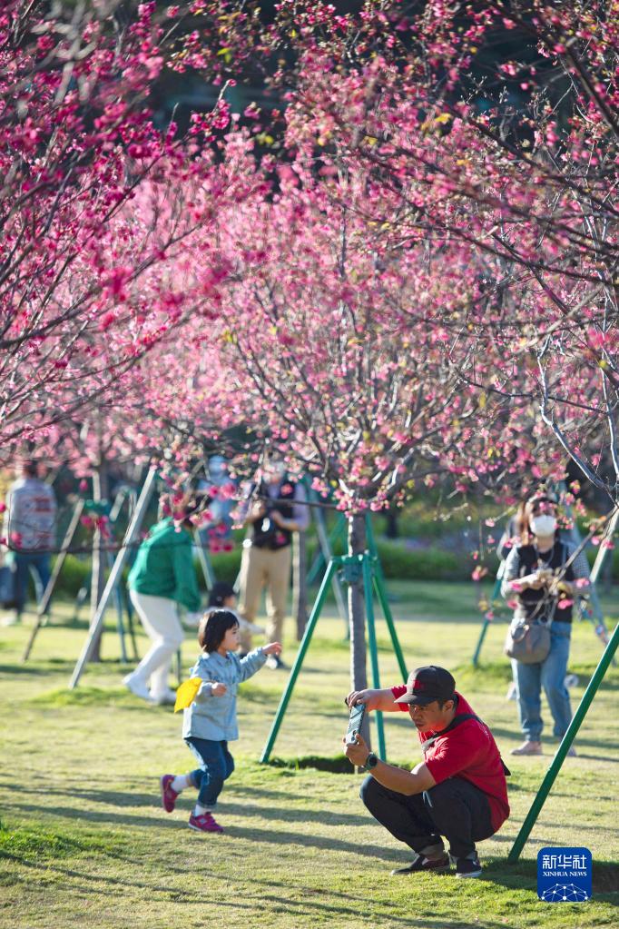 近日,澳門(mén)氹仔龍環(huán)葡韻的櫻花盛開(kāi),春意盎然。