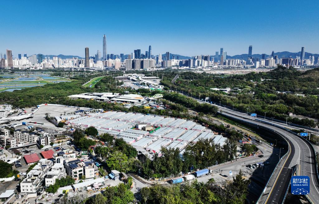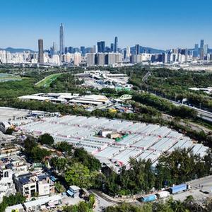 這是3月8日拍攝的香港新田方艙醫院(無(wú)人機照片)。