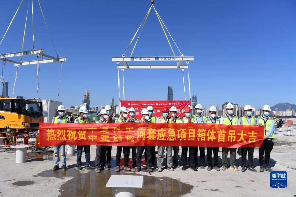中央援港應急醫院項目完成首個(gè)集成式箱體吊裝