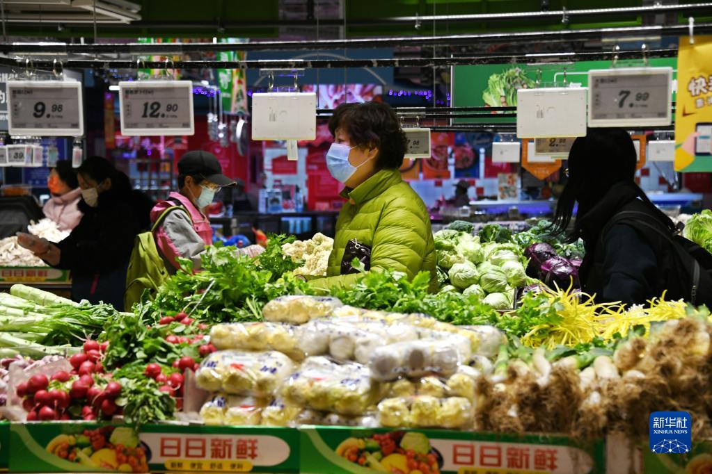 3月14日,市民在青島市市南區一商超選購蔬菜。