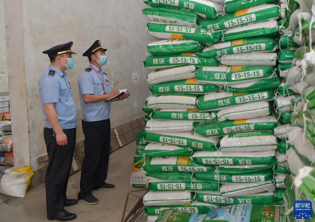 3月14日,南昌縣市場(chǎng)監督管理局蔣巷分局的工作人員在蔣巷鎮的一家農資商店檢查銷(xiāo)售的化肥。