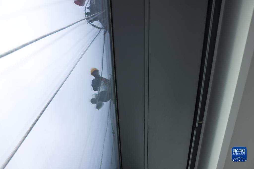 近日,高度335米的貴陽(yáng)國際貿易中心雙子塔迎來(lái)今年的首次清洗。8名“蜘蛛人”從塔巔垂直而下開(kāi)展高空作業(yè),將耗時(shí)20天左右才能完成清洗。