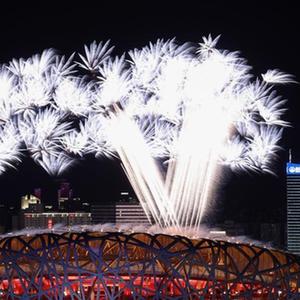 在第二十四屆冬季奧林匹克運動(dòng)會(huì )開(kāi)幕式上,焰火綻放在北京國家體育場(chǎng)上空(2022年2月4日攝)。