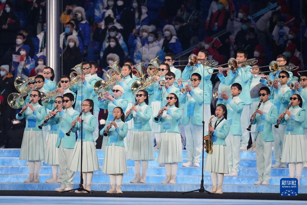 在北京2022年冬殘奧會(huì )開(kāi)幕式上,重慶市特殊教育中心揚帆管樂(lè )團參演團隊演奏國際殘奧委會(huì )會(huì )歌(2022年3月4日攝)。