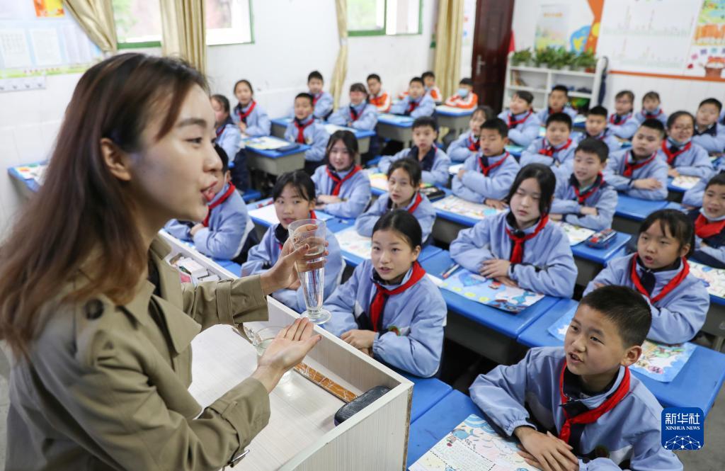 3月21日,四川省華鎣市雙河三小五年級四班的老師在給學(xué)生講解節約用水知識。