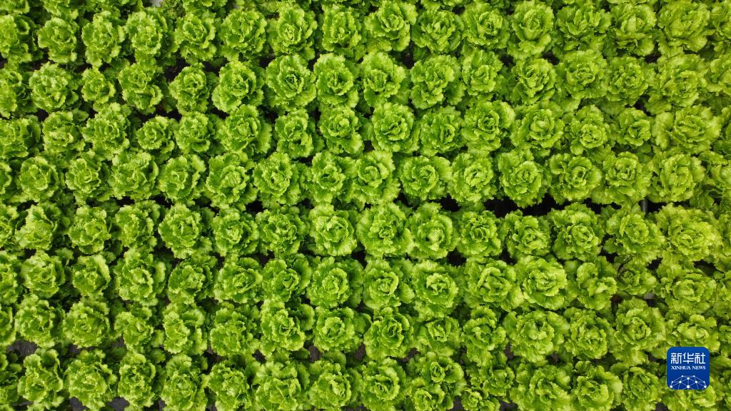3月21日在天津市寧河區百利蔬菜種植基地拍攝的意大利生菜(無(wú)人機照片)。新華社記者 孫凡越 攝
