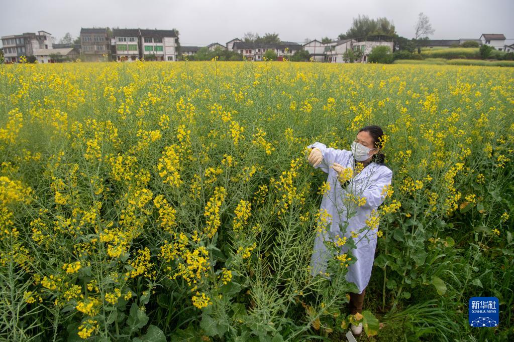 3月21日,重慶市農科院研究員黃桃翠在“慶油3號”制種基地觀(guān)察油菜品種生長(cháng)情況。