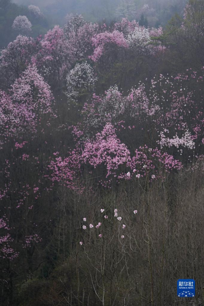 3月23日拍攝的江油市大康鎮戴天山村盛開(kāi)的辛夷花。