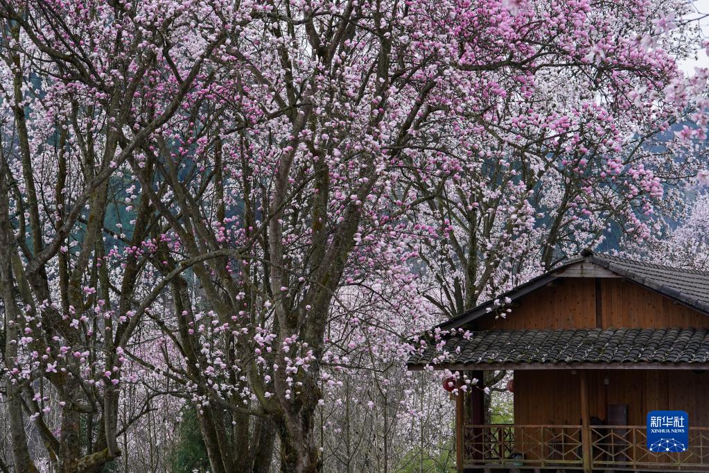 目前正是四川省江油市大康鎮戴天山村的辛夷花盛開(kāi)的季節。這里的辛夷花在群山環(huán)抱中綿延數十里,呈現出一派世外桃源的景象,吸引游人前來(lái)踏青賞花。當地的農家樂(lè )旅游接待、土特產(chǎn)銷(xiāo)售等“花經(jīng)濟”,促進(jìn)了村民們增產(chǎn)增收。