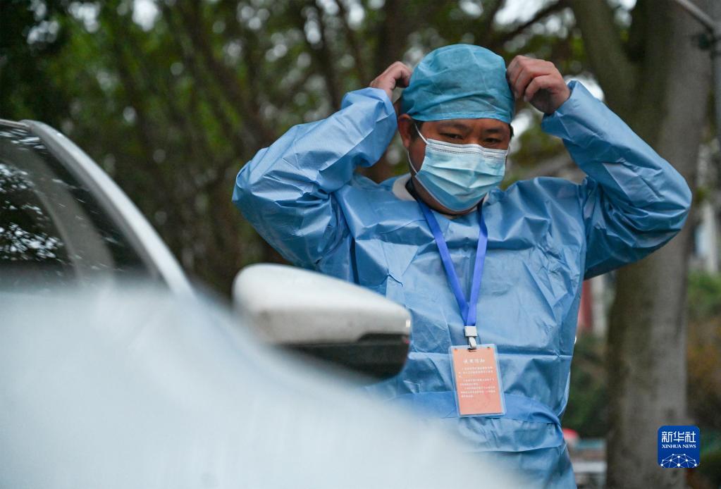 3月24日,在泉州市豐澤區東海街道社區衛生服務(wù)中心,出租車(chē)司機葉德細在穿戴防護用具。