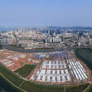建設中的中央援港應急醫院和方艙醫院(無(wú)人機照片,3月27日攝)。