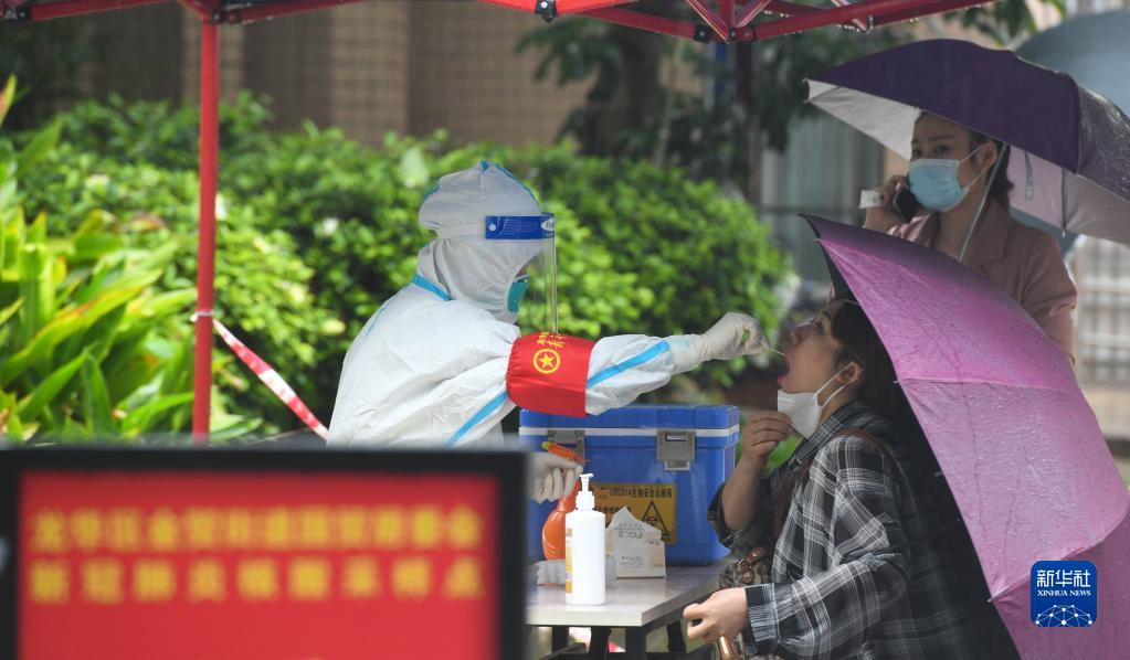 4月1日,在??谑旋埲A區金貿街道國貿社區新冠肺炎核酸采樣點(diǎn),居民接受核酸采樣。