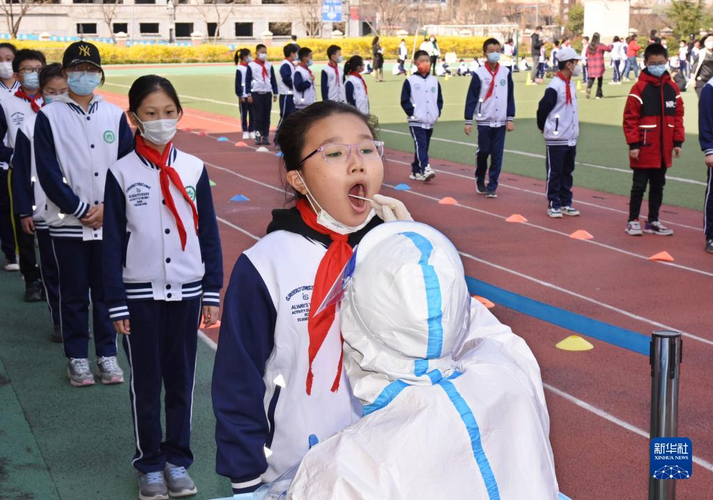 當日,山東青島部分學(xué)校組織師生進(jìn)行核酸采樣工作,為恢復線(xiàn)下教學(xué)做準備。