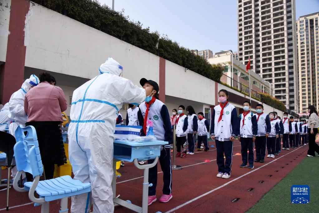 當日,山東青島部分學(xué)校組織師生進(jìn)行核酸采樣工作,為恢復線(xiàn)下教學(xué)做準備。