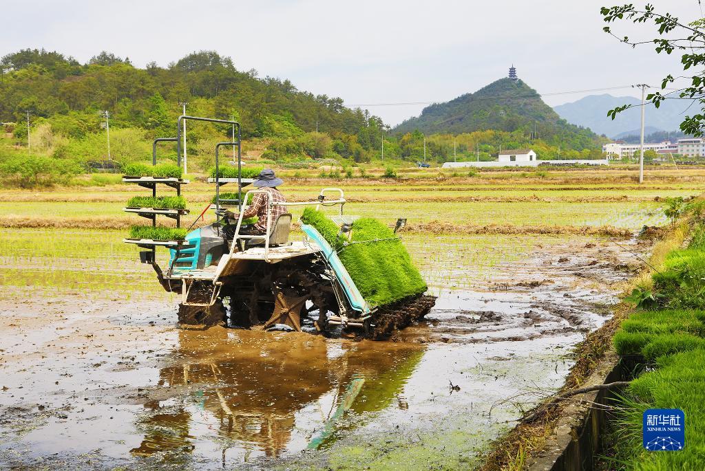4月10日,浙江省義烏市廿三里街道的2000余畝華溪谷田園,飛揚農機服務(wù)專(zhuān)業(yè)合作社的社員在機插早稻。