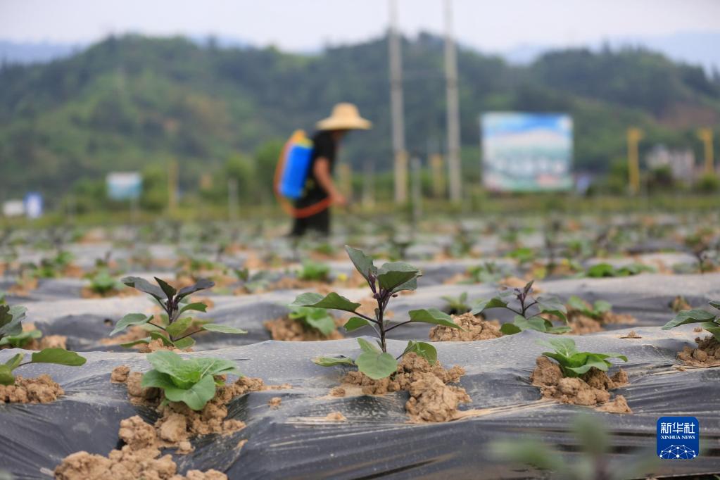 4月9日,在貴州省黔東南苗族侗族自治州榕江縣車(chē)江大壩蔬菜基地,農民在對蔬菜進(jìn)行管護。