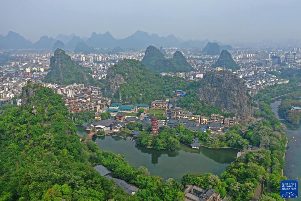 春意日濃,廣西桂林市城區山清水碧,草木蔥蘢,一派宜人景色。