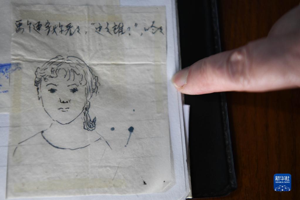 這是丈夫徐國誠為張愛(ài)蘭畫(huà)的一幅人物速寫(xiě)(5月18日攝)。
