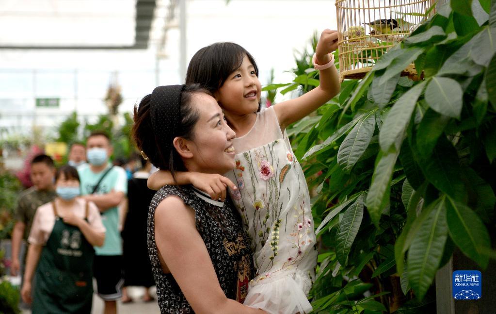 5月29日,市民在西安際華3511文創(chuàng )科技園內的花市休閑。