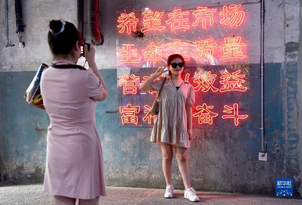5月29日,市民在西安際華3511文創(chuàng )科技園內拍照。
