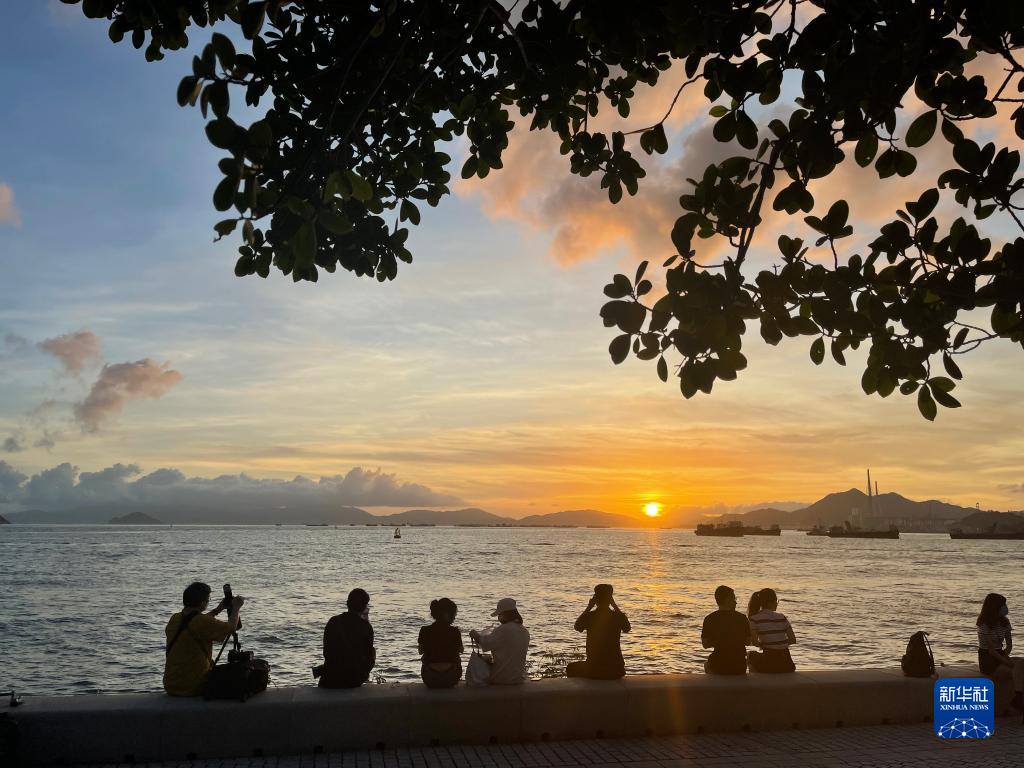 維港岸邊望夕陽(yáng)(5月29日攝)。