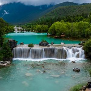 6月26日,游客在位于玉龍雪山腳下的藍月谷游覽。