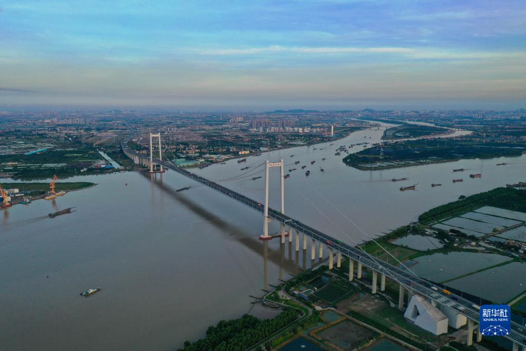 南沙大橋大沙水道橋(6月29日攝,無(wú)人機照片)。南沙大橋上跨珠江口獅子洋水域,連接廣州市南沙區東涌鎮、番禺區海鷗島和東莞市沙田鎮。