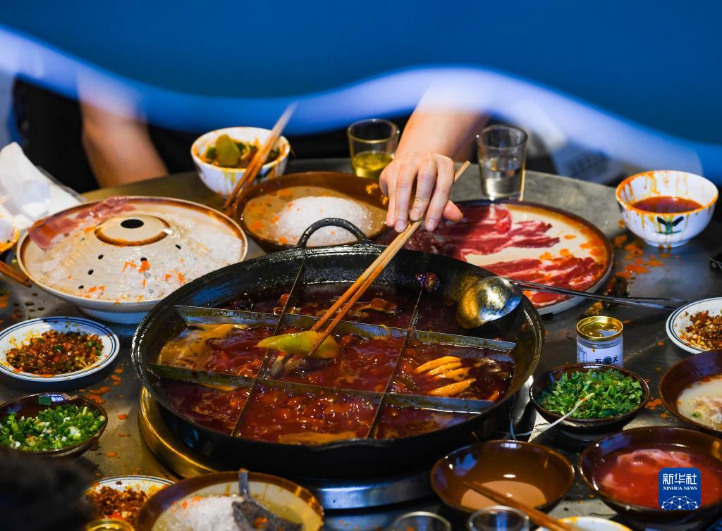 消費者在重慶九街有個(gè)單位文創(chuàng )街區一火鍋店內吃火鍋(6月5日攝)。