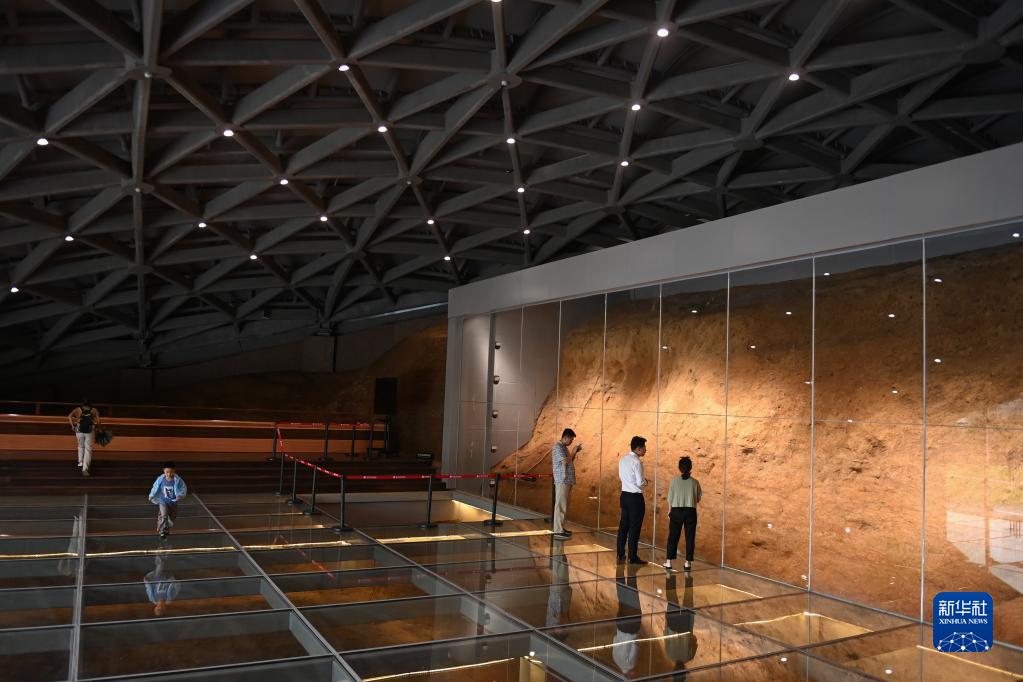 7月6日,觀(guān)眾在老虎嶺水壩遺址展示館內參觀(guān)。