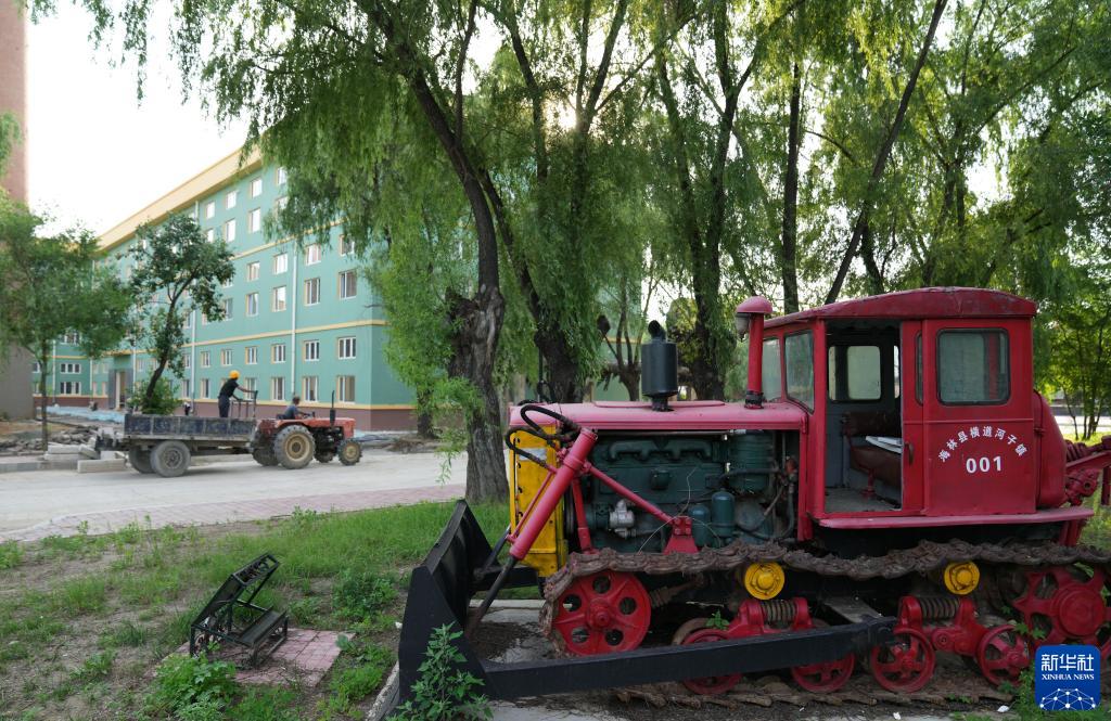 7月6日,施工人員經(jīng)過(guò)VC·產(chǎn)業(yè)園中展示的一臺老式推土機。新華社記者 王建威 攝